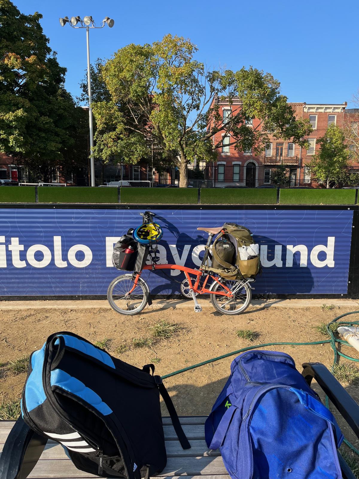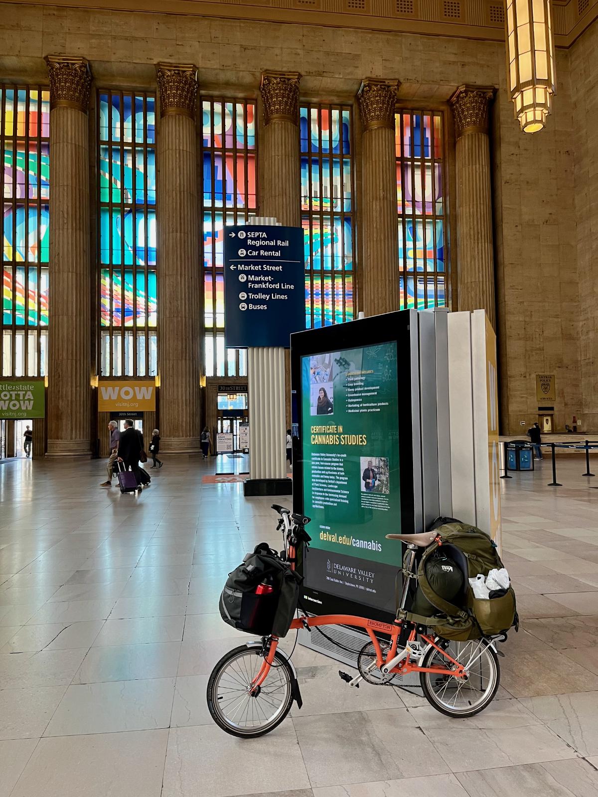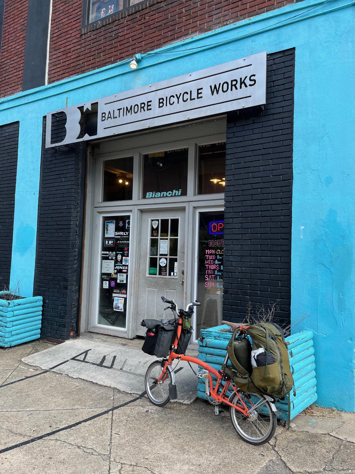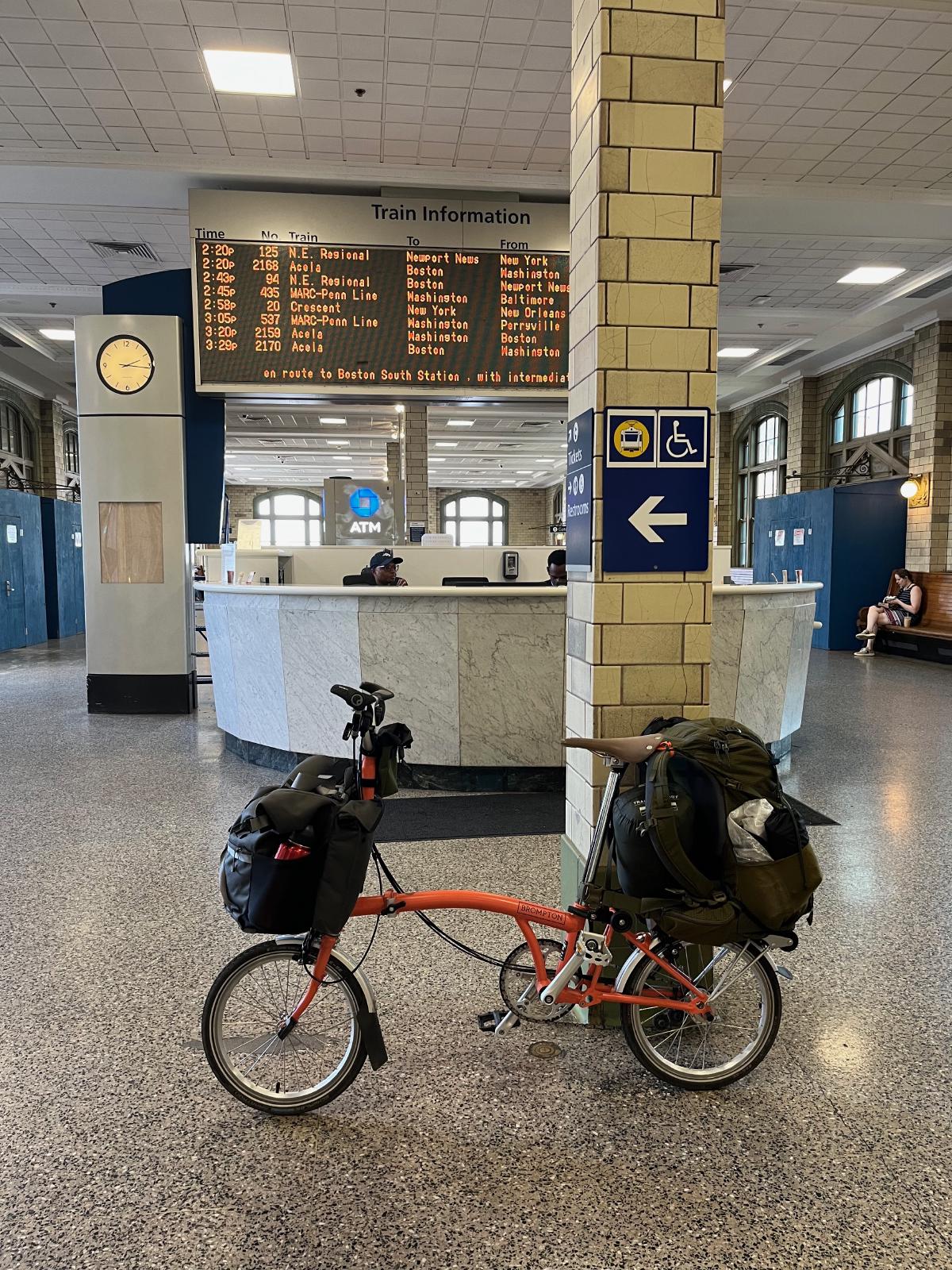 I stopped by the local Brompton shop and had a quick lunch before going to Baltimore Penn Station to catch my train to Philly. Thanks to having a folding bike, there was no need to plan for any special bike accomodations; I put the bike in the overhead rack above my seat.