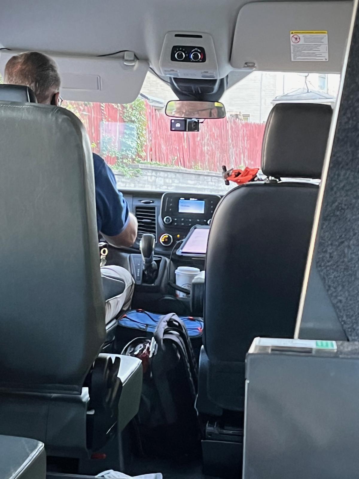 Usually when I travel, I think about my Brompton folding bike as just a piece of luggage, so I didn’t think to tell the bus company that I have a bike. It turns out, the buses don’t have much luggage capacity, but fortunately, the bus wasn’t full and the bus driver put my bike in the front passenger seat.