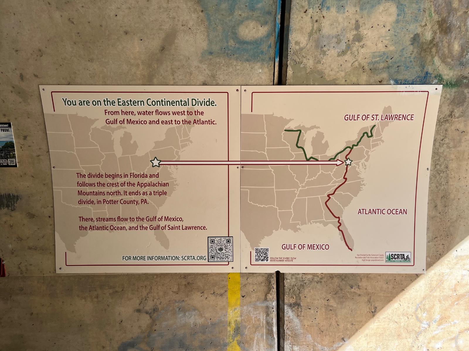 There are a few major landmarks or places of interest. The first is the Eastern Continental Divide. Even though I’ve heard of it before, I didn’t really know what it was. Basically, water drains towards either the Gulf of Mexico or the Atlantic Ocean depending on what side of the divide you’re on. This divide also used to represent the boundary between British and French territories in North America.
