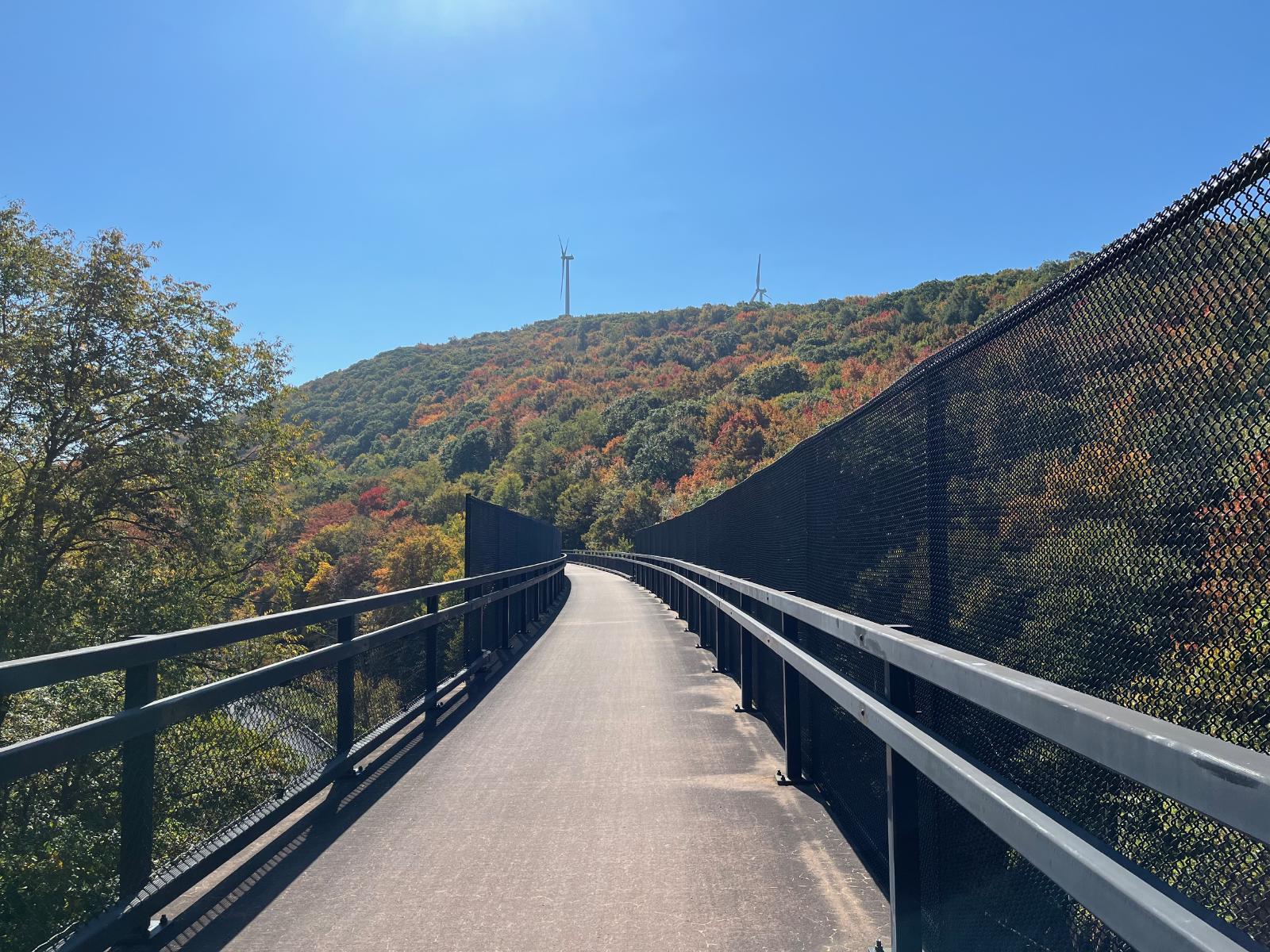 Mostly flat. One of the first decisions you’ll have to make is deciding whether to go from Pittsburgh to Cumberland or the other way around. Either way, the incline isn’t too challenging, especially when going from Pittsburgh to Cumberland–the first 120 miles is a gentle incline of just under 2,500 ft which sounds like a lot but remember, it’s over 120 miles which results in an average grade of +0.2%. For the vast majority of that 120 miles, you can barely tell that you’re going uphill. The fun part of going in this direction is the reward at the end for doing the gentle climb–the last 30 miles takes you downhill 1,800 ft so for much of it, you can even coast towards the end!