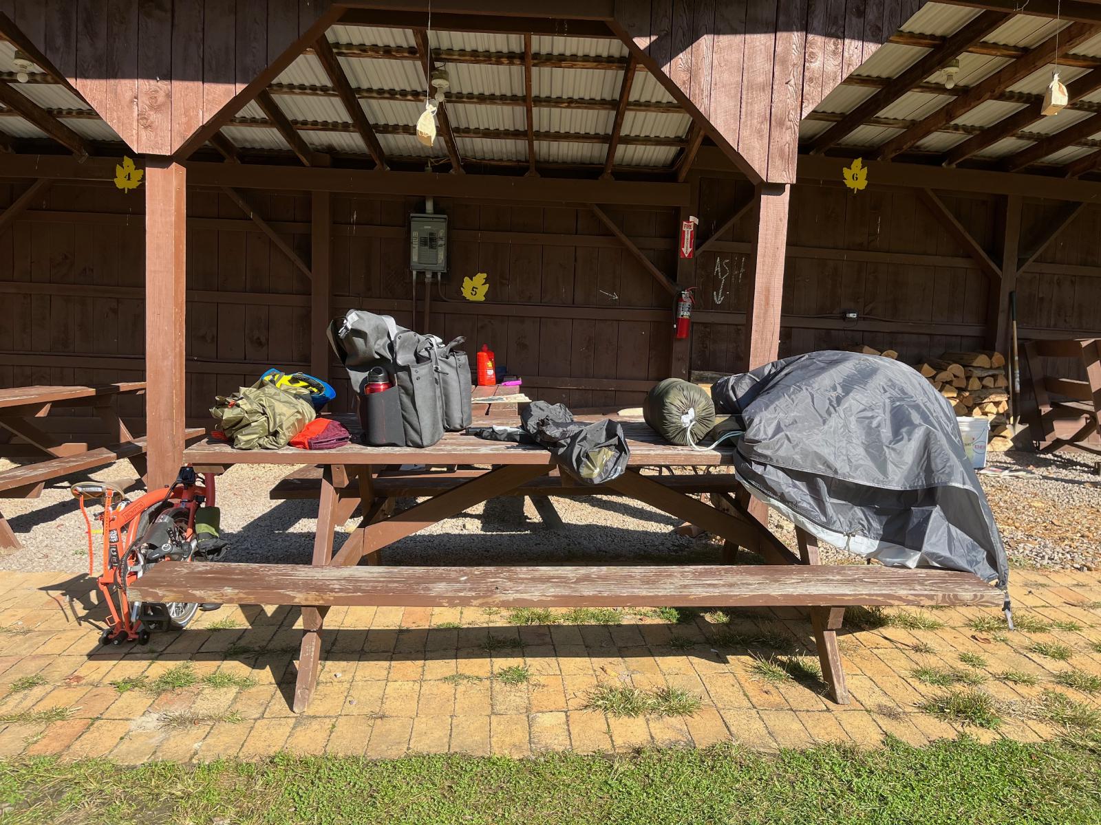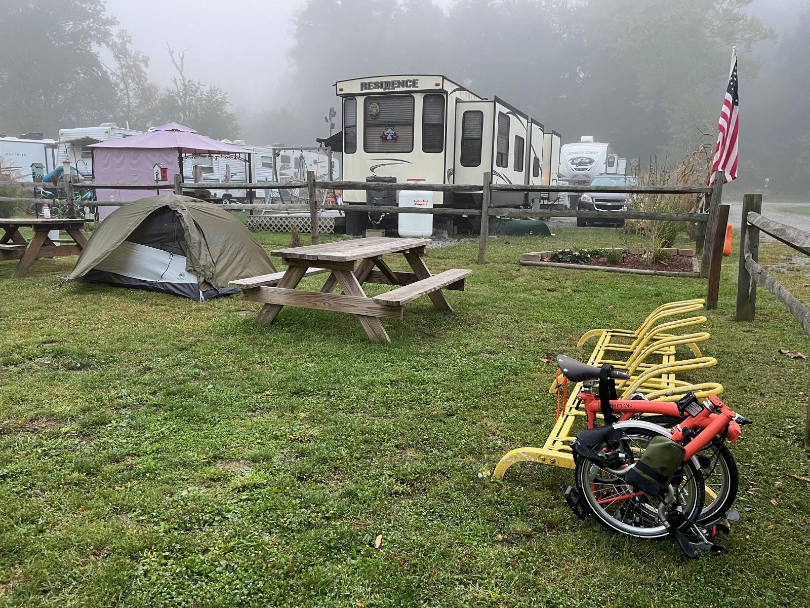 I made really good time on day one, so I got in to the KOA just before 5pm, plenty of time to pitch my tent and get settled before sunset. I took advantage of the cafe at the camp store to get a salad for dinner. This is when I was first introduced to the western PA practice of having french fries on salad.