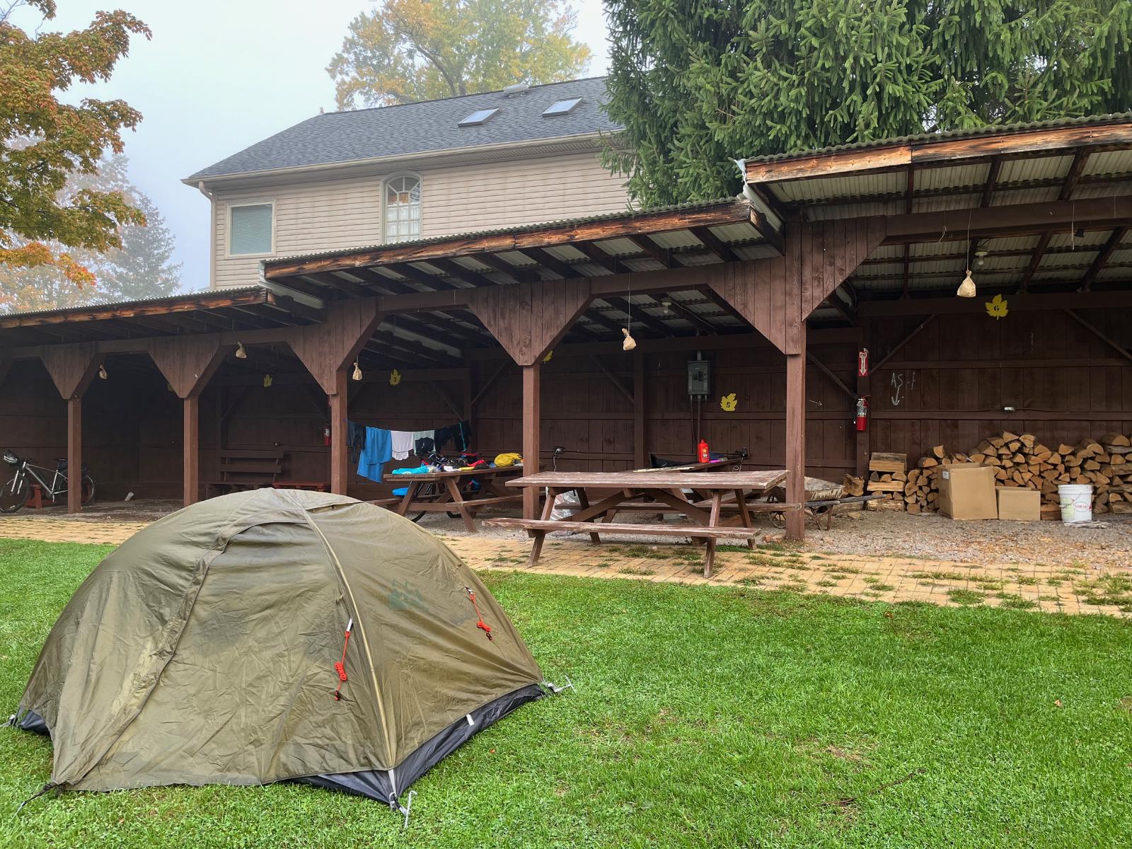 My plan for the first two nights on the trail was to camp, so I brought a tent with me and made reservations in advance for a campsite. The first night’s stay was at the Uniontown KOA just outside of Connellsville, PA. I’ve never stayed at a KOA, but it’s a great way to do tent camping while still having modern conveniences like a shower, bathrooms, and even a camp store with hot prepared food and snacks. They also have a pool, an arcade, playground, and laundry facilities.
